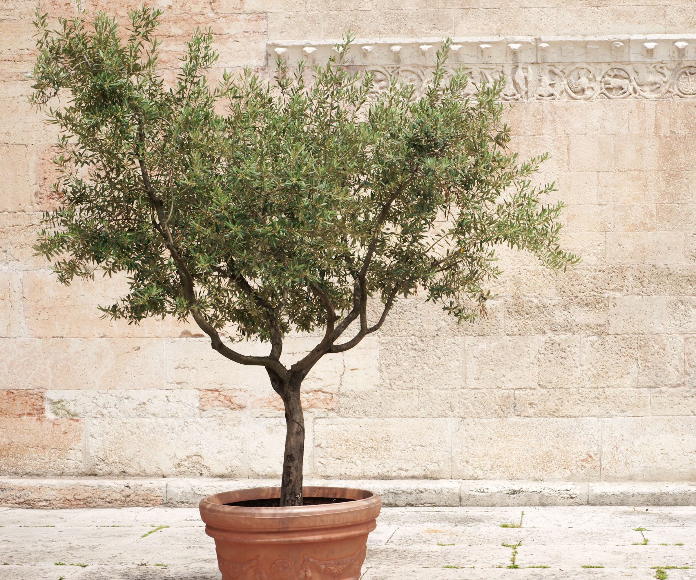 Măslinul este adaptat climatului arid și poate fi crescut în ghiveci pe terasă.